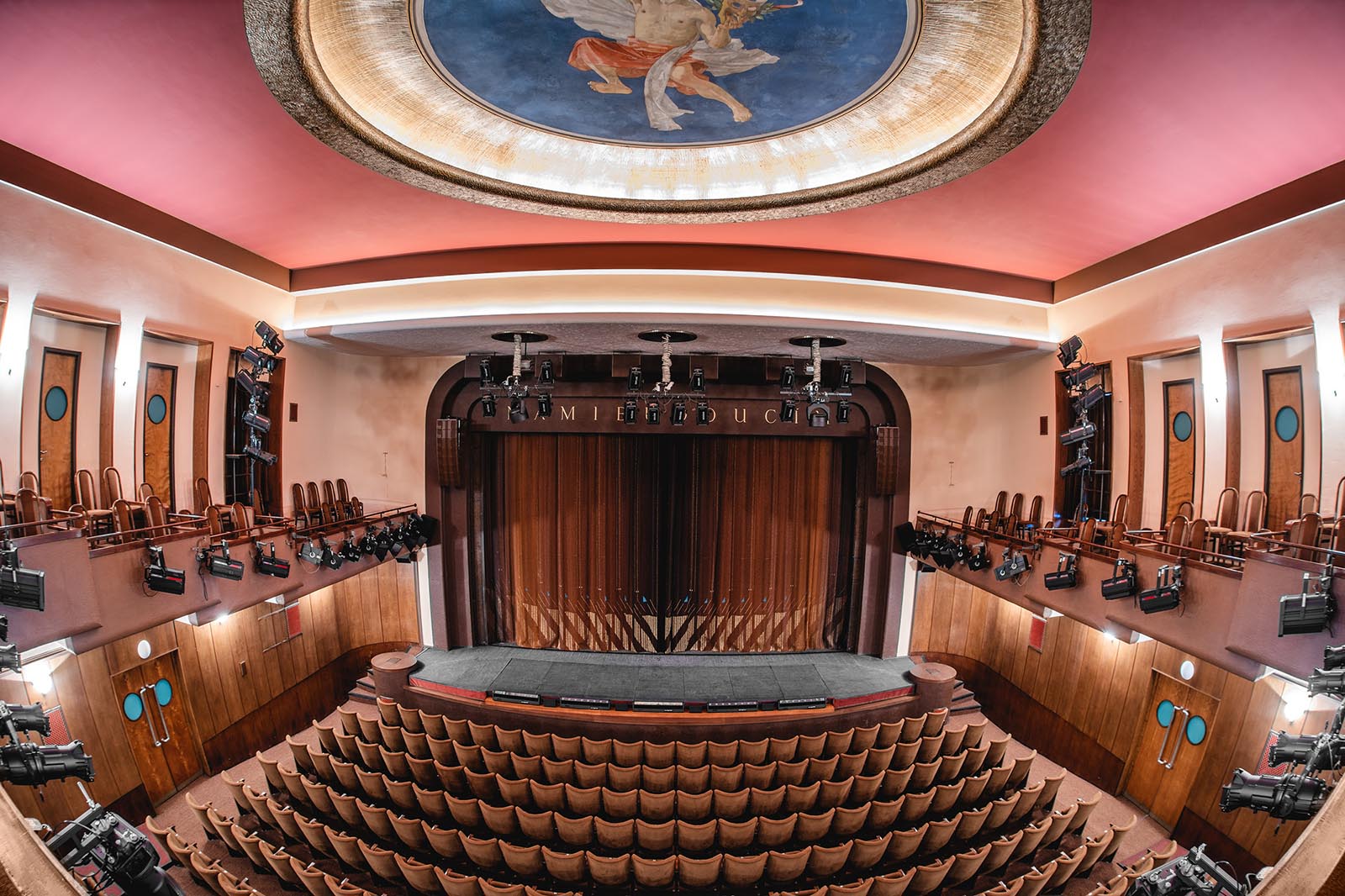 V hledišti u hlavní scény se nachází celkem 506 míst k sezení, z toho 323 sedadel je umístěno v přízemí sálu, 129 sedadel na balkoně a 34 sedadel poslouží divákům v lóžích. K dispozici je též 20 sedadel navíc (přístavků).